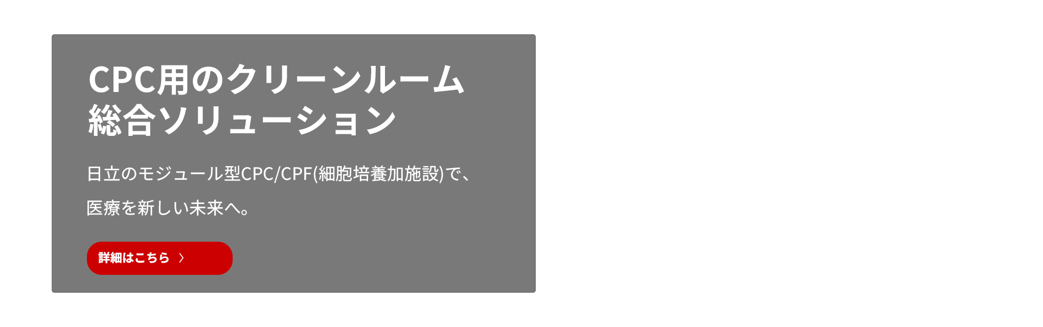 CPC用のクリーンルーム総合ソリューション日立のモジュール型CPC/CPF(細胞培養加施設)で、医療を新しい未来へ。