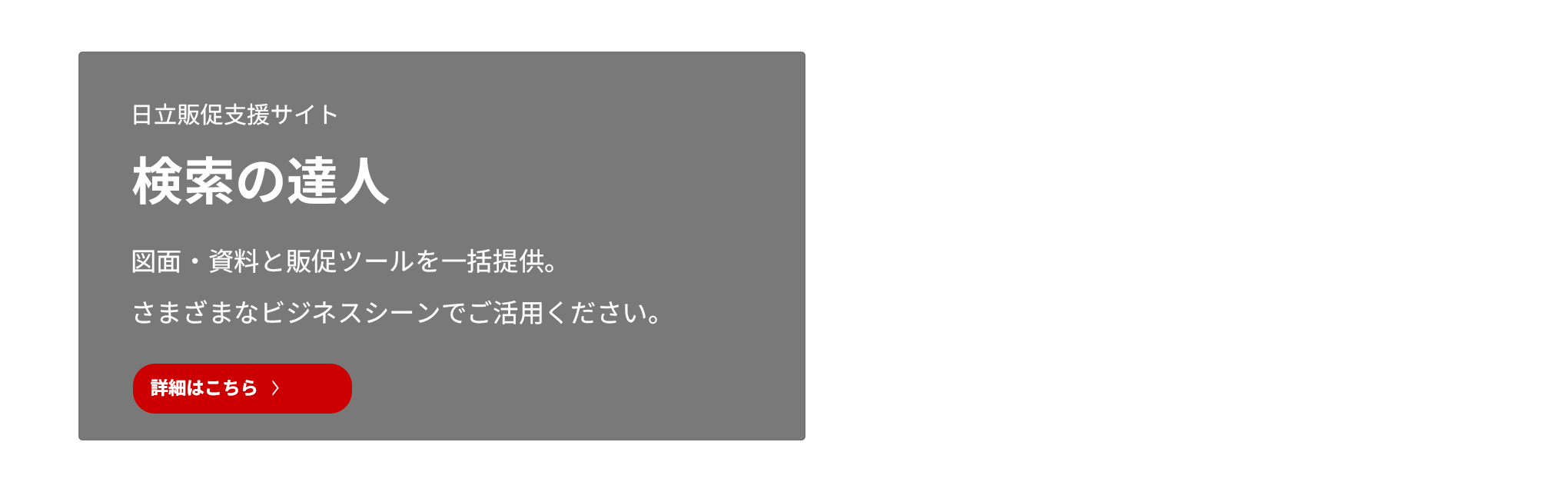 日立販促支援サイト検索の達人図面・資料と販促ツールを一括提供。さまざまなビジネスシーンでご活用ください。