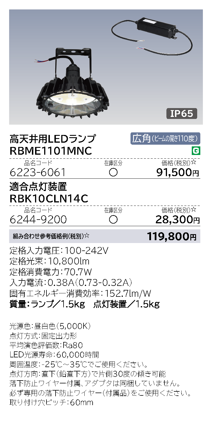 適合点灯装置:RBK10CLN14C (別売)と組み合わせてご使用ください。