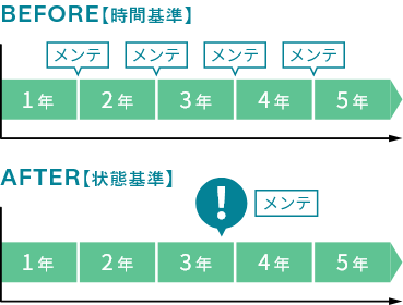 「状態基準」の保守・保全が可能となり、メンテナンス回数の低減や製品寿命の延長を実現。設備保全の省力化やコストダウンに貢献します。