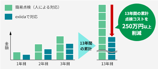 「exiida遠隔監視・予兆診断の費用」と「簡易点検の委託費用」。